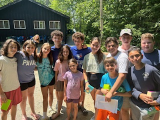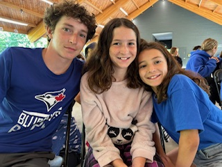 A typical day for camp is waking at 7:30 and standing at mifkad by 7:50 to sing the anthem, learn a Hebrew word of the day and do an exercise. Then we head into breakfast and get our daily schedule of activities. This morning we taught the word for mosquito which is “yatoosh” as in, “there’s a mosquito on yatoosh, better brush it away before it bites you”. After breakfast the kids clean their cabins and then off to their activities. Each unit does an educational activity twice a week and that is where we faculty help out. I am one of 6 faculty, Jewish educators, Rabbis and Cantors from the various synagogues or day schools in Ontario, with occasionally some from Michigan, upstate NY and Quebec. This week I’m joined by Rabbi Noam Katz from Leo Baeck day school, Lisa Baumel from Holy Blossom Temple, Steve Greenwood from Har Zion, Elana Paice-Lidsky from Paul Penna Jewish day school and Dora-Anne from Anshe Sholom in Hamilton. We help run programs about Jewish values, Jewish literacy, and some are more project oriented for example building an art structure in honour of the Israeli hostages. As for the rest of the day we have some time to walk around and join the campers at their various activities like pottery, A&C, cooking, hockey, swim, ski, sail, paddle, ropes, campcraft, podcast, etc. the weather has been excellent so I particularly love joining in the water activities.