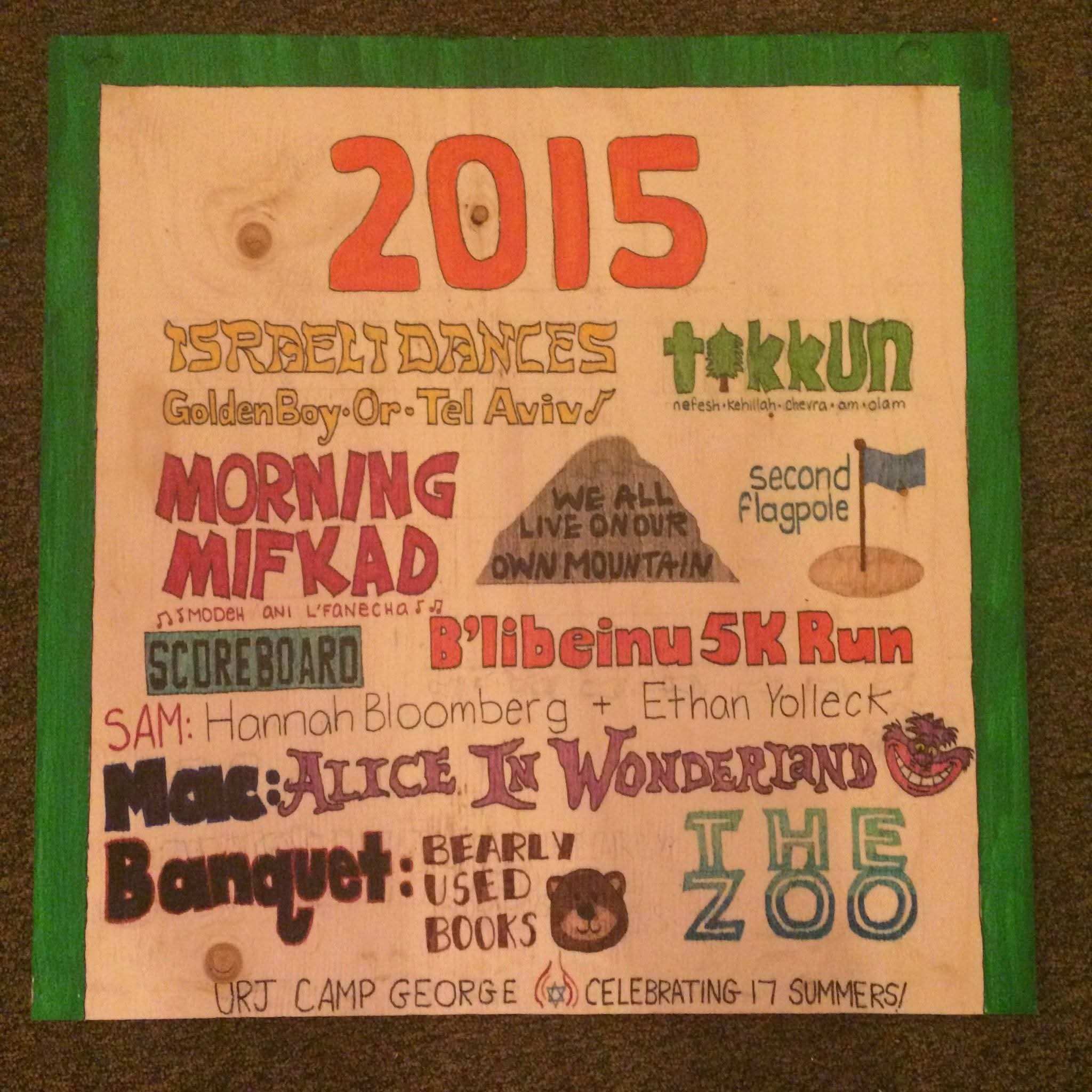 When we heard the devastating news of the Chadar burning down, our initial thoughts were how heartbreaking it was to lose the plaques. The team plaques representing the ruach, determination, and creativity from an unlikely combination of campers and staff on each team from a collection of over 25 years of colour war teams, and the annual end of Summer plaques that held special, unique, and unforgettable moments from each year – gone. History was attached to those walls. The first plaques were created to celebrate 12 summers of Camp George. After that, we in A&C took it upon ourselves to continue making them year after year. We highlighted the new, exciting additions to camp, banquet and Maccabiah themes, and the SAM award winners. We loved and looked forward to revealing the finished plaque on the last night of camp. And then it got hung on the Chadar walls like all the ones that came before.